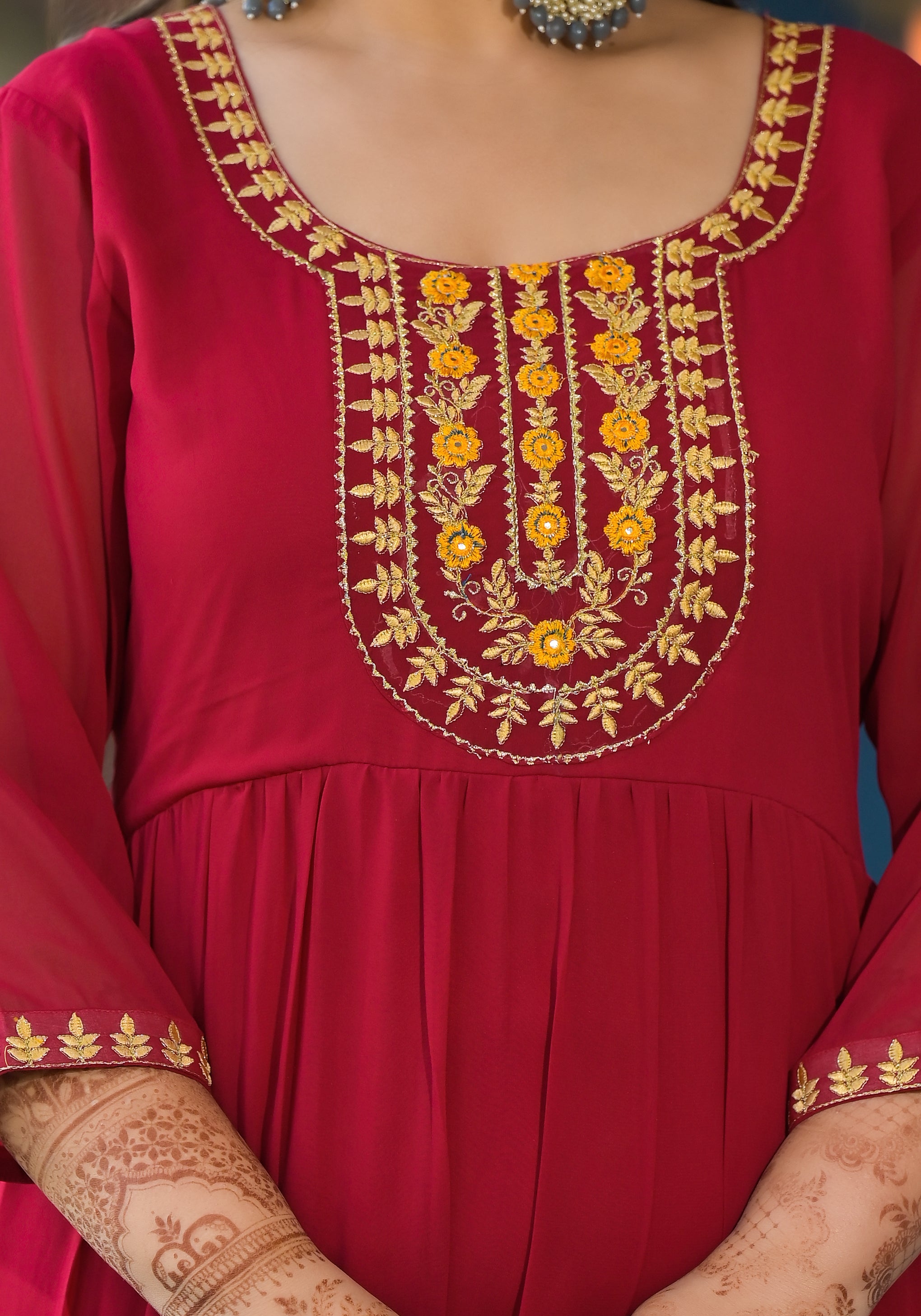 Red Georgette Embroidered Anarkali with Dupatta Set (Plus Size)