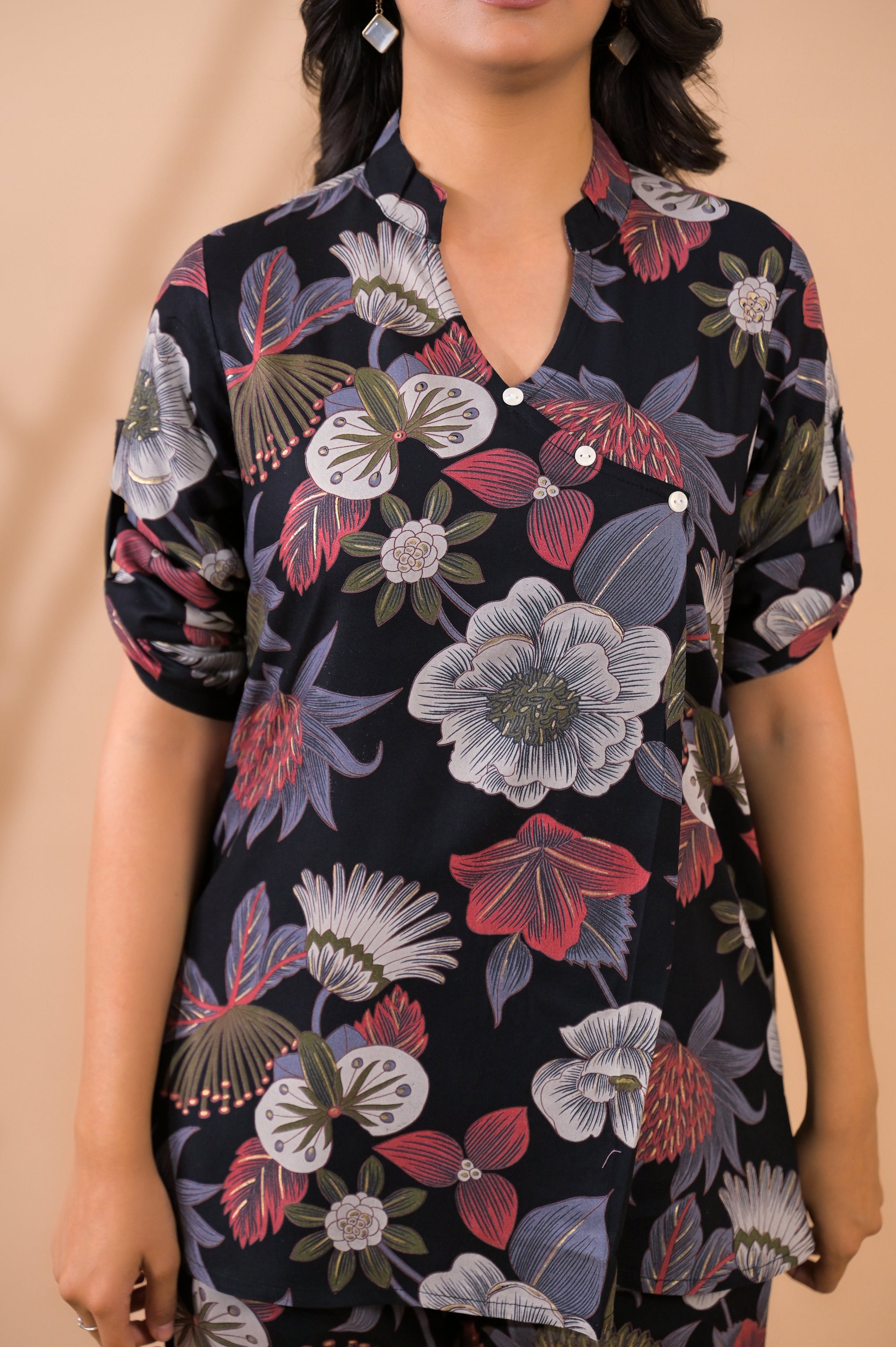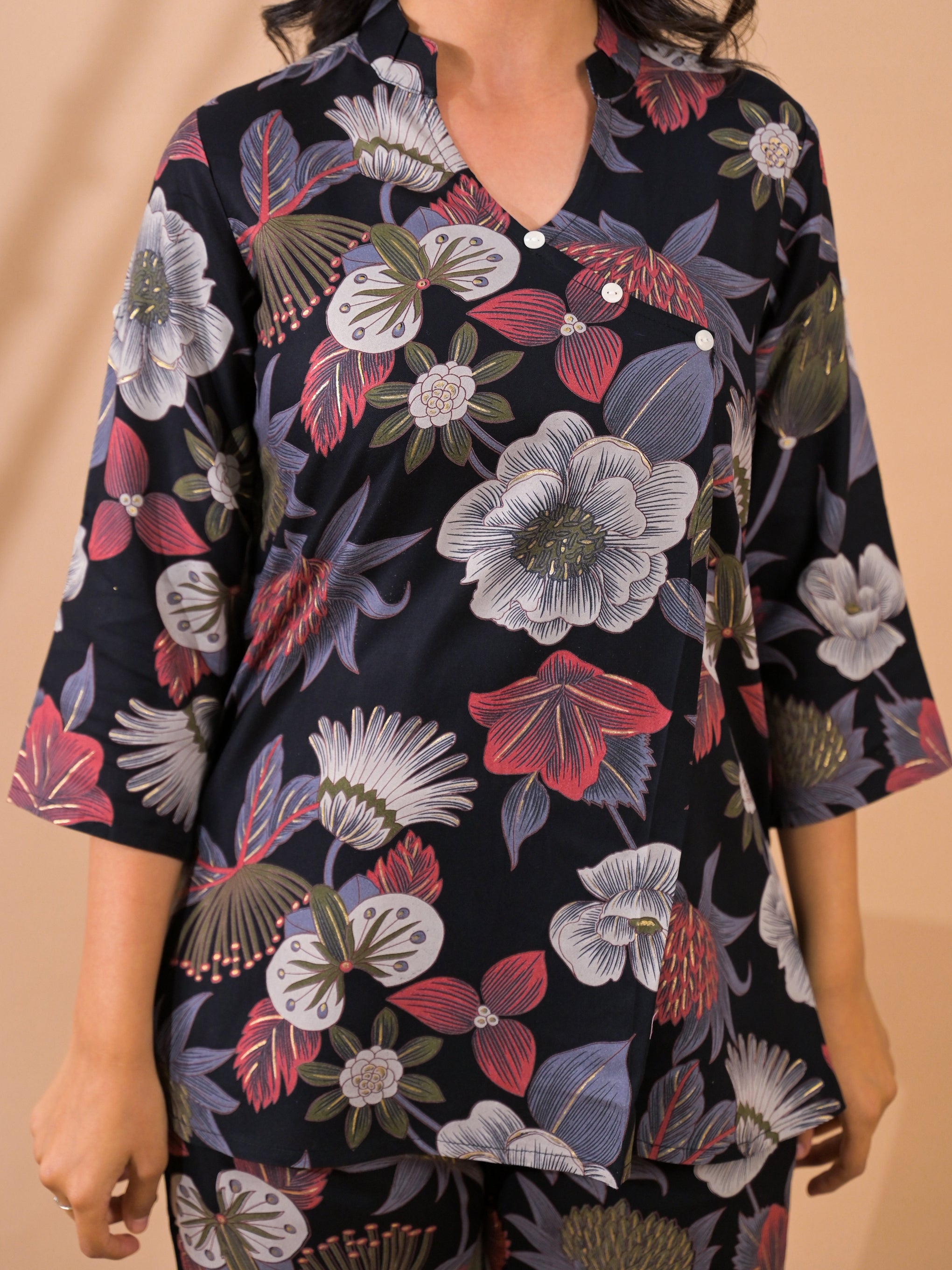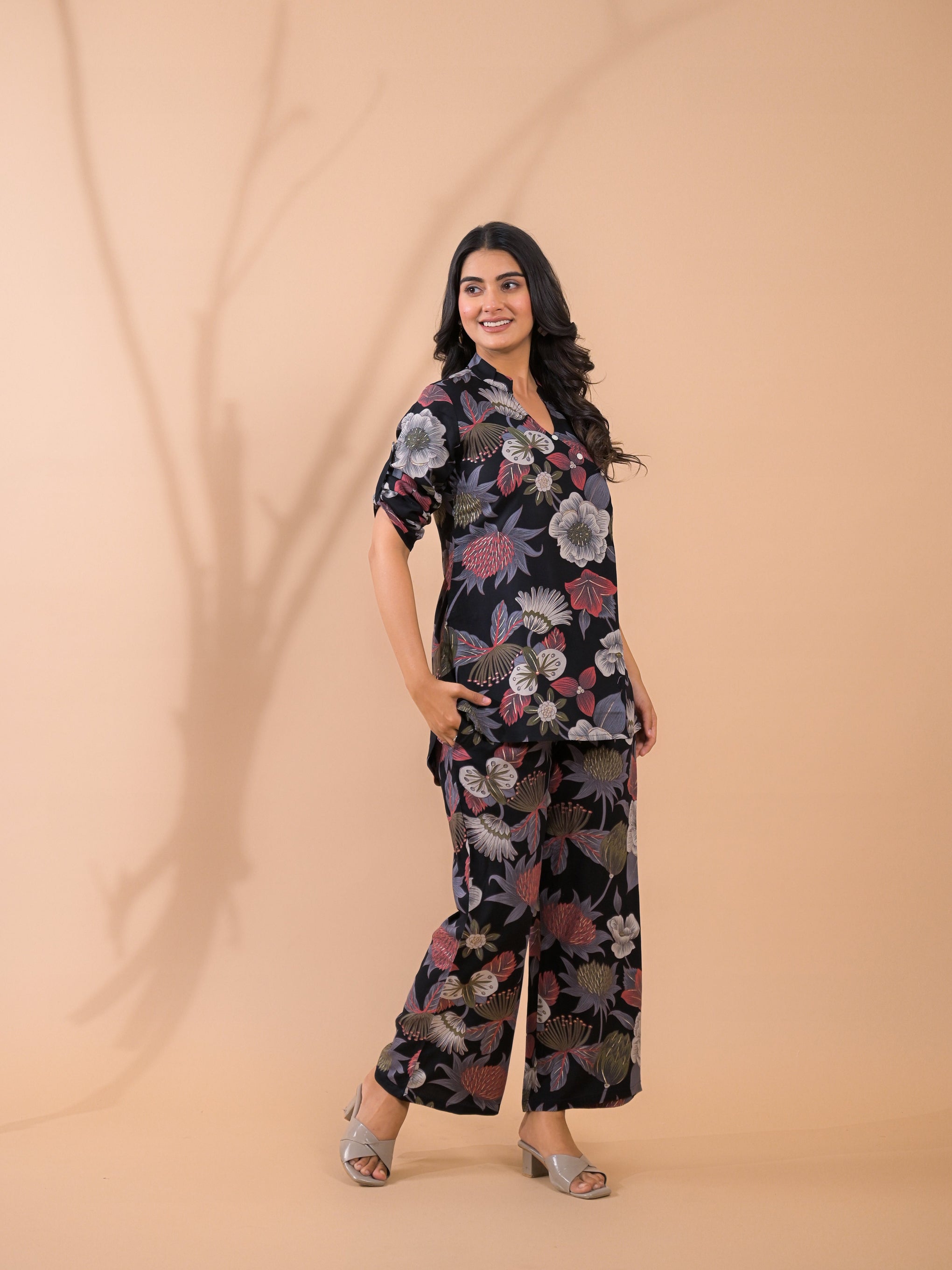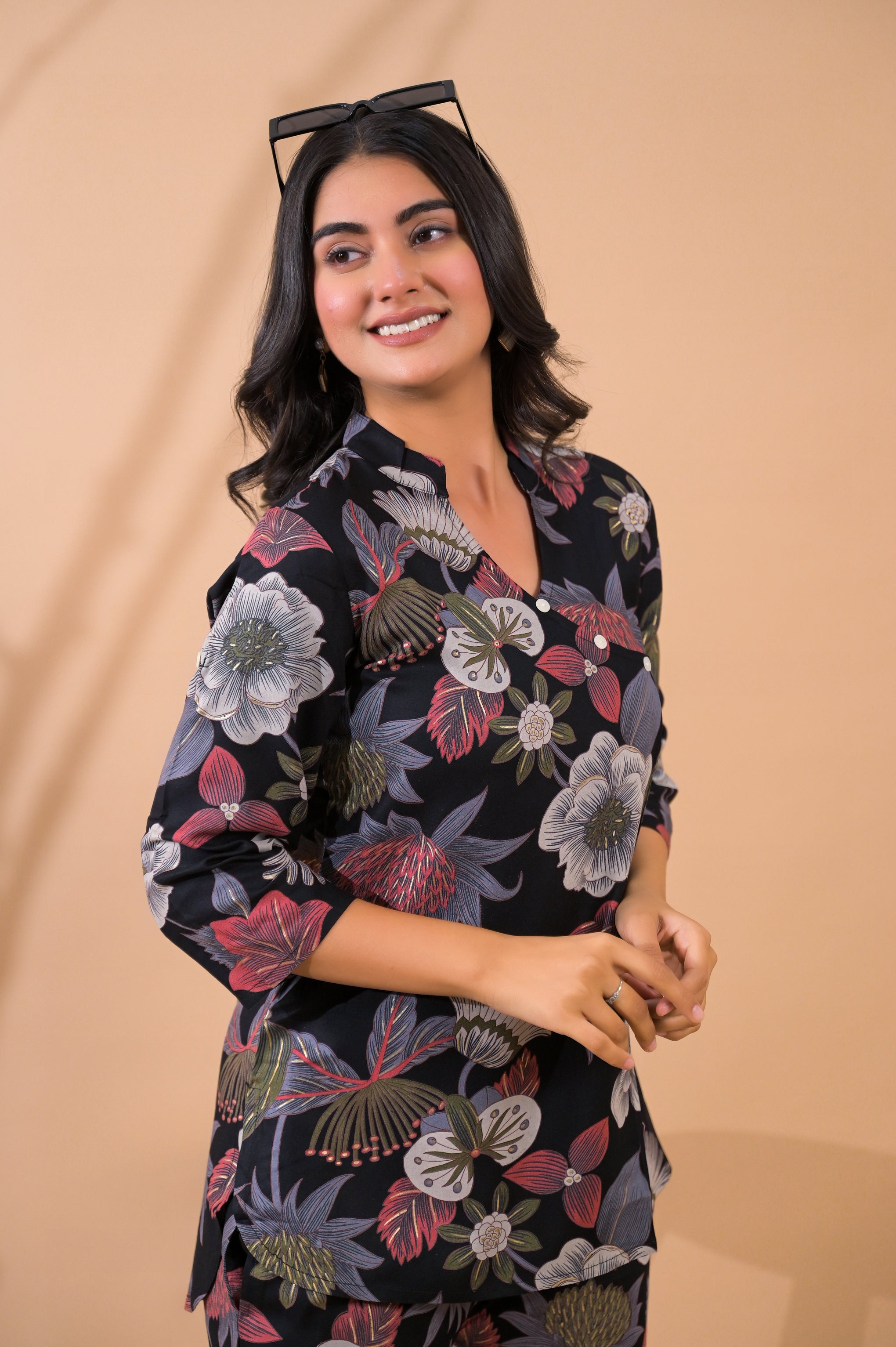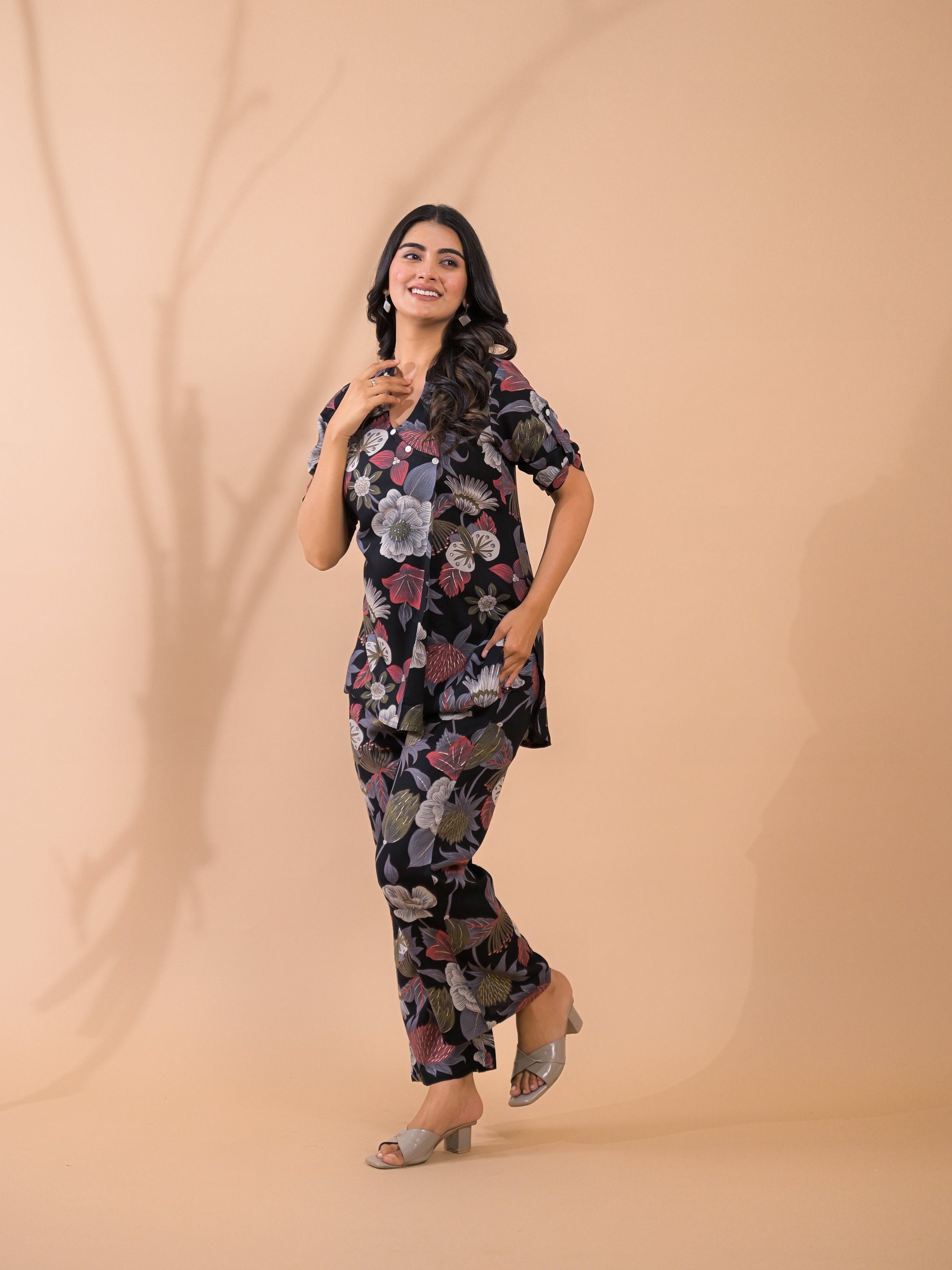 ✨ Breathable Comfort: Relaxed, and stylish all day long✨ Functional Elegance: Palazzo bottoms designed with two side pockets — where comfort meets practicality✨ Refined Details: front button-down front elevate the silhouette with a crisp, tailored feel✨ Effortless Sleeves: 3/4 sleeves strike the perfect balance between coverage and ease