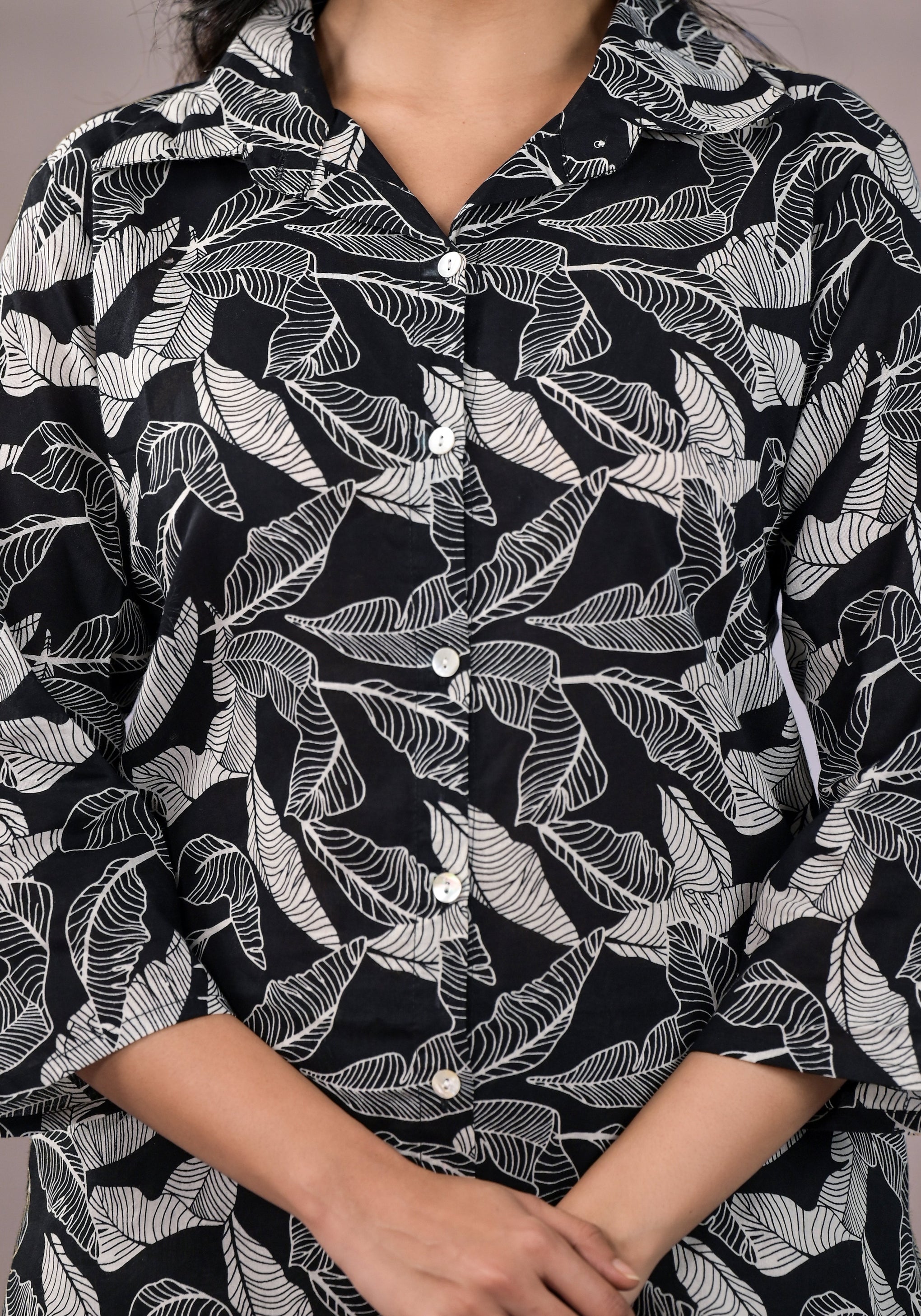 Make a bold fashion statement with our Leafy Abstract Black Co-Ord Set. This vibrant ensemble combines a striking clean hue with the comfort of premium cotton, offering both style and ease for various occasions.