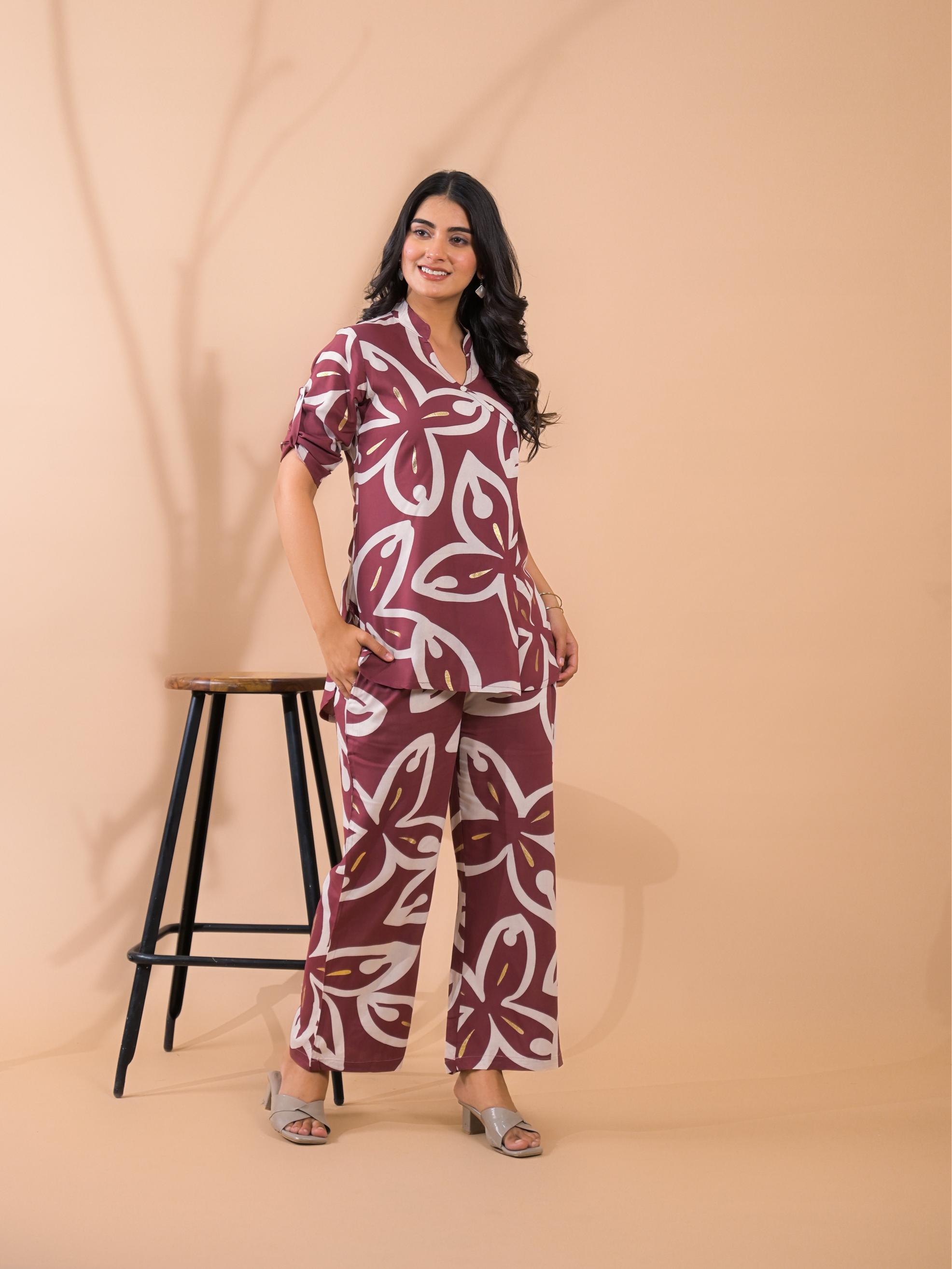 Maroon Co-Ord Set with Palazzo Pants