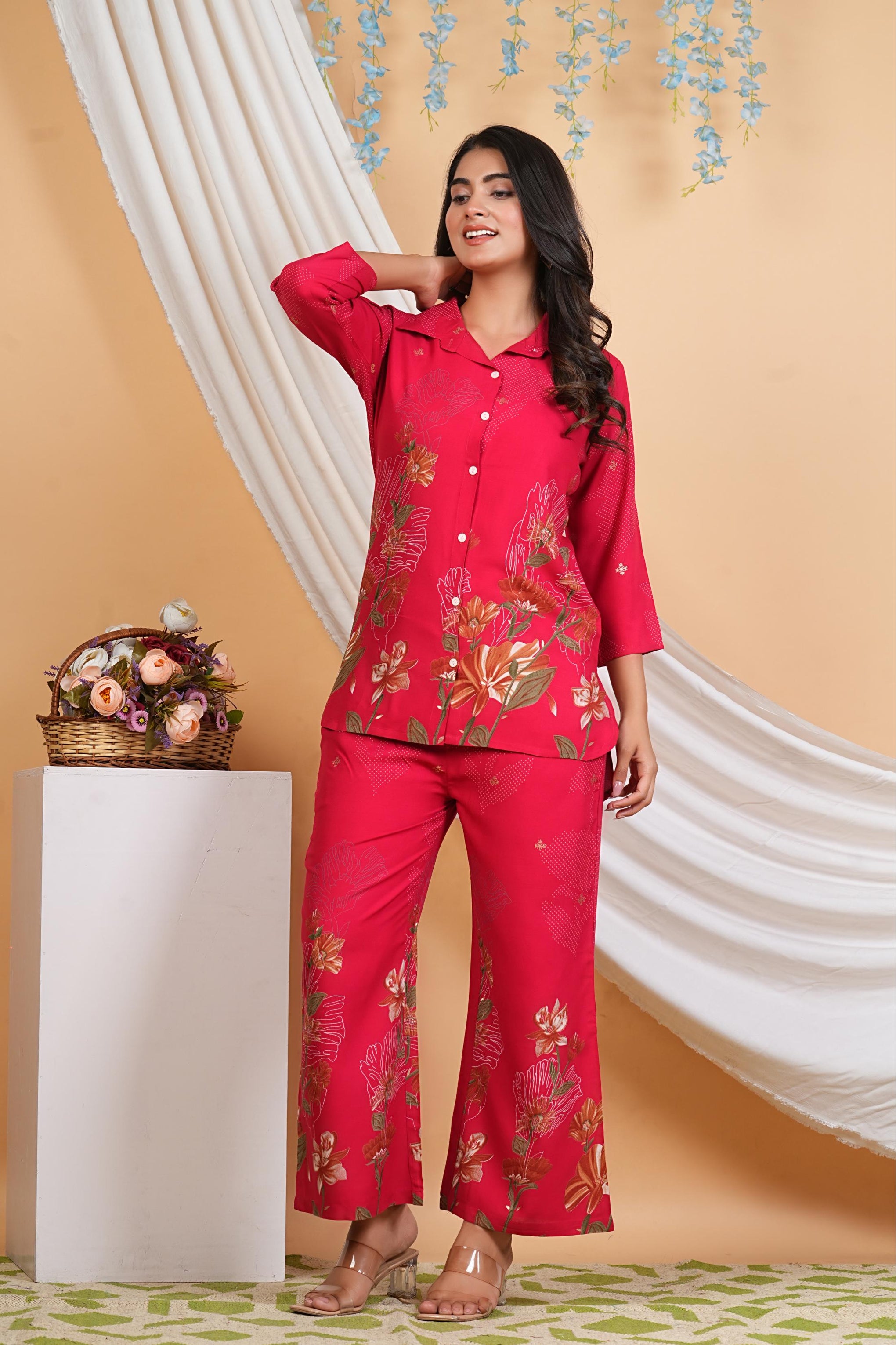 ✨ Breathable Comfort: Relaxed, and stylish all day long✨ Functional Elegance: Palazzo bottoms designed with two side pockets — where comfort meets practicality✨ Refined Details: front button-down front elevate the silhouette with a crisp, tailored feel✨ Effortless Sleeves: 3/4 sleeves strike the perfect balance between coverage and ease