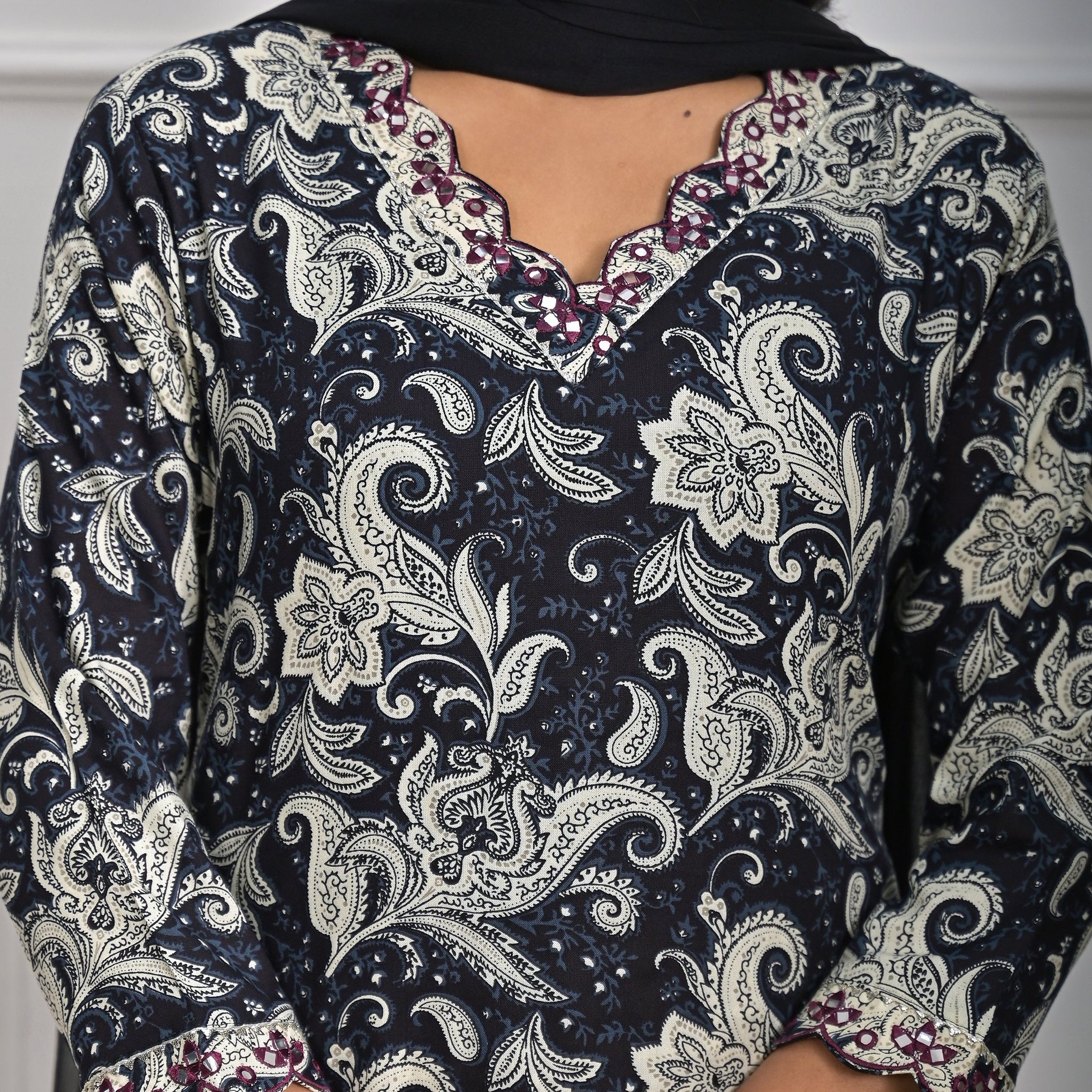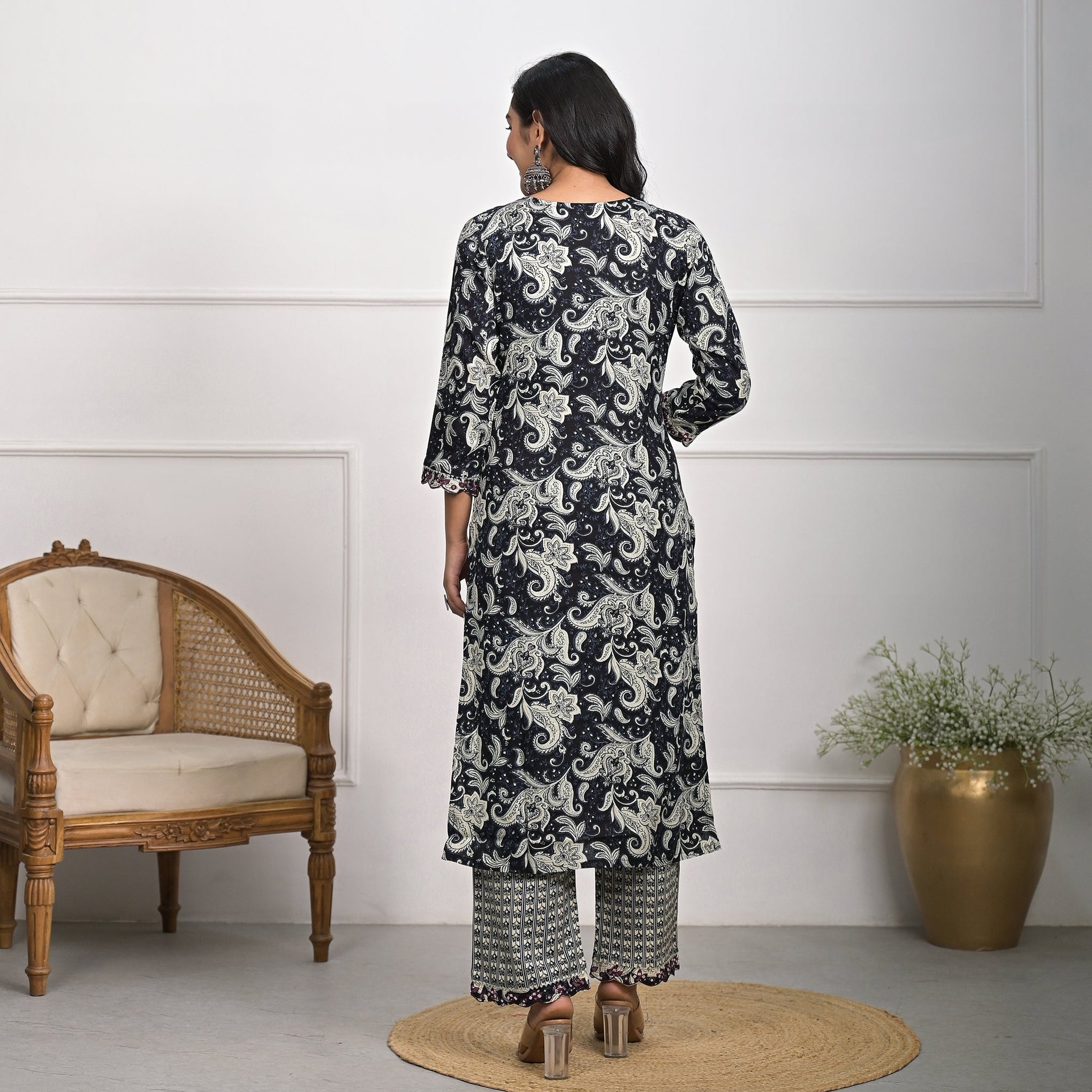 Packet Includes:1x Rayon Black Kurta with Dupatta and pajama