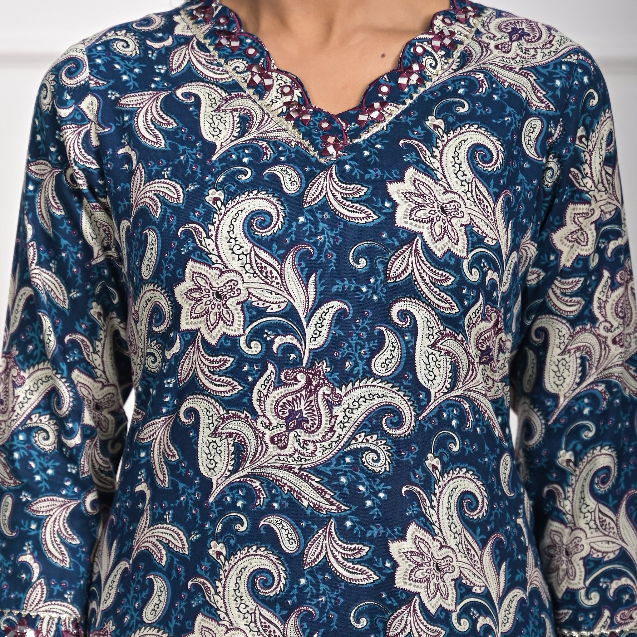 Packet Includes:1x Rayon Blue Kurta with Dupatta and pajama
