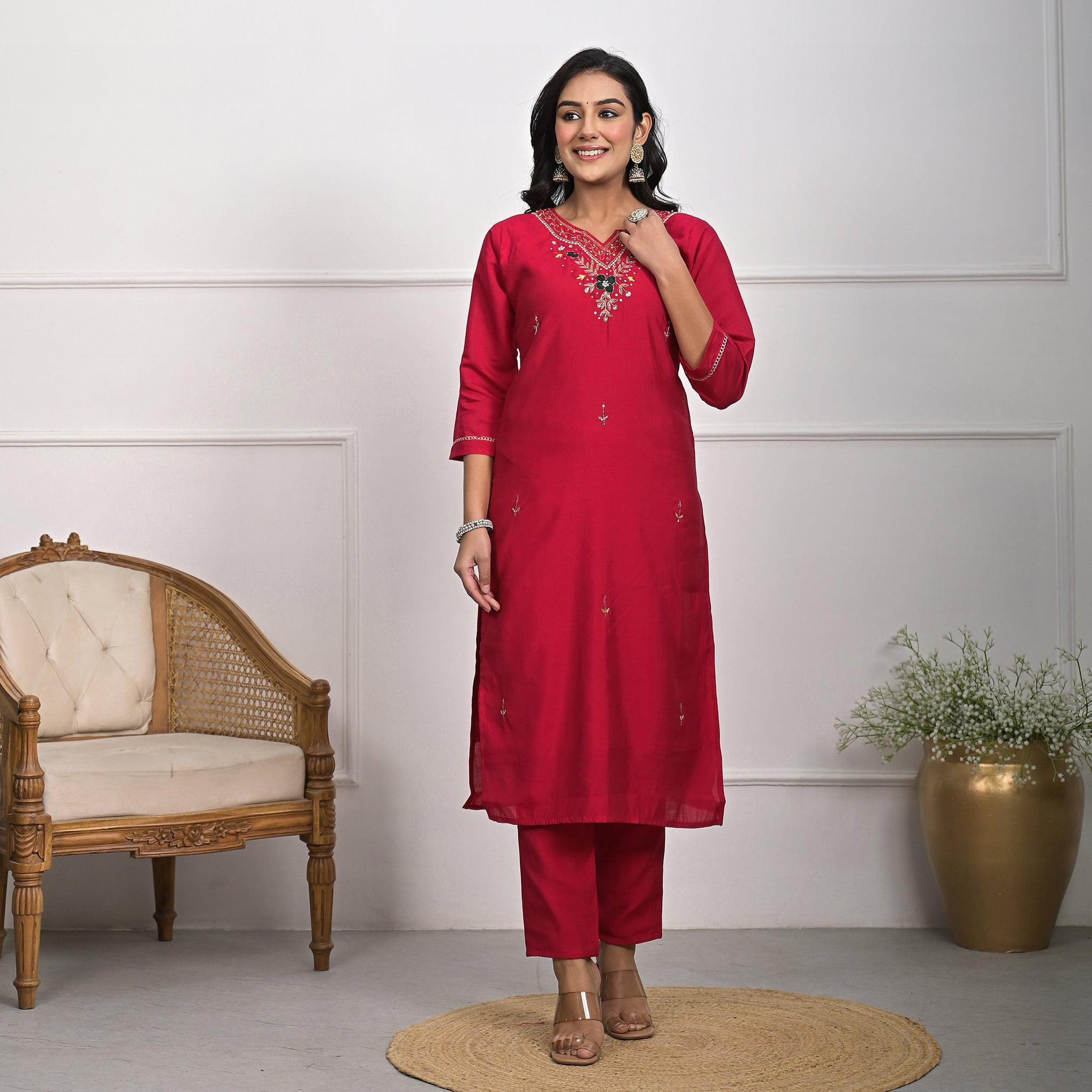 Make a bold yet sophisticated statement with the Traditional Roman Silk Red Kurta Set. This luxurious ensemble, crafted from high-quality Roman silk, features a beautifully designed kurta, paired with a dupatta and pajama. Perfect for weddings, cultural celebrations, and festive occasions, this set combines timeless tradition with modern elegance.