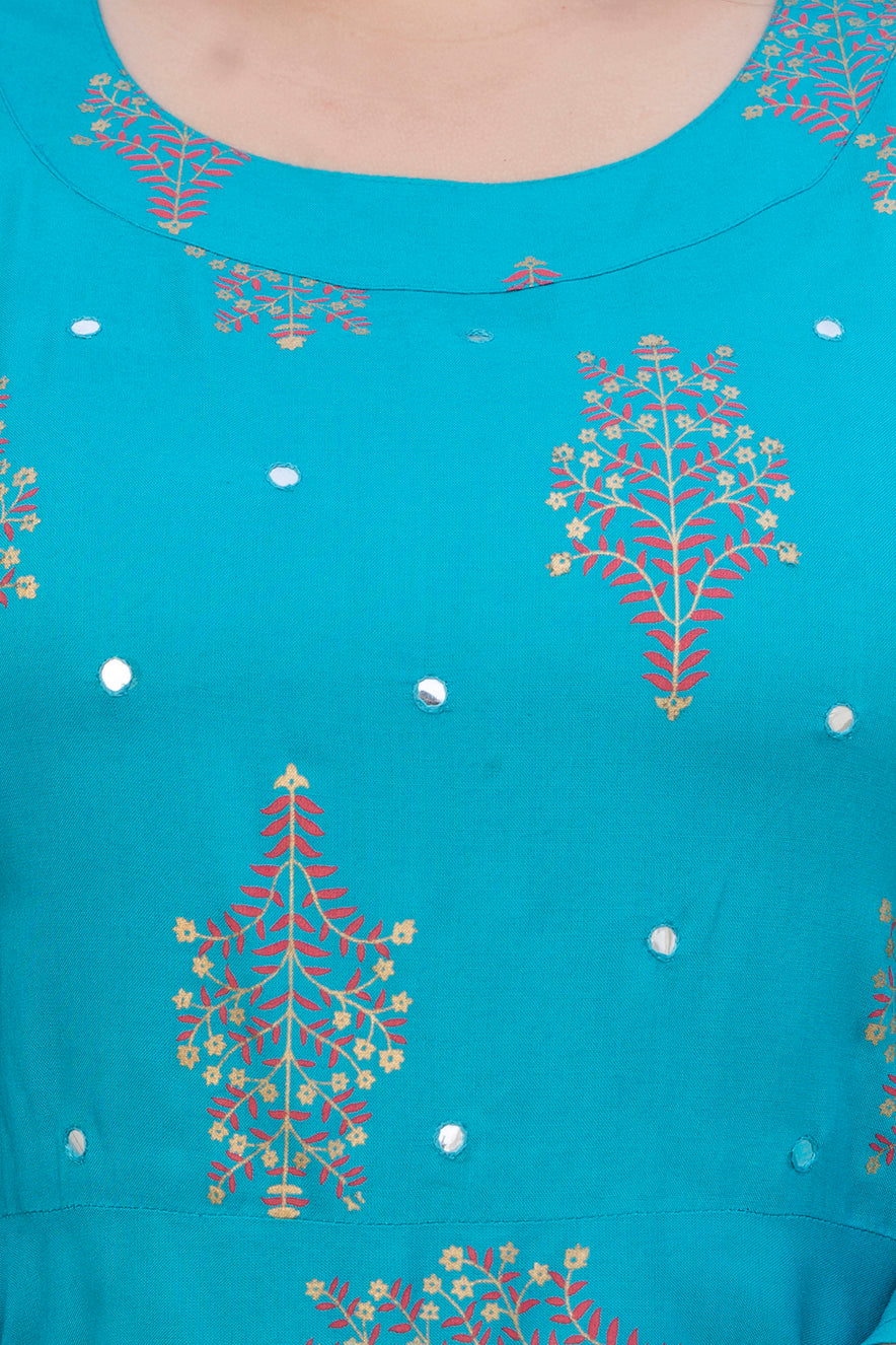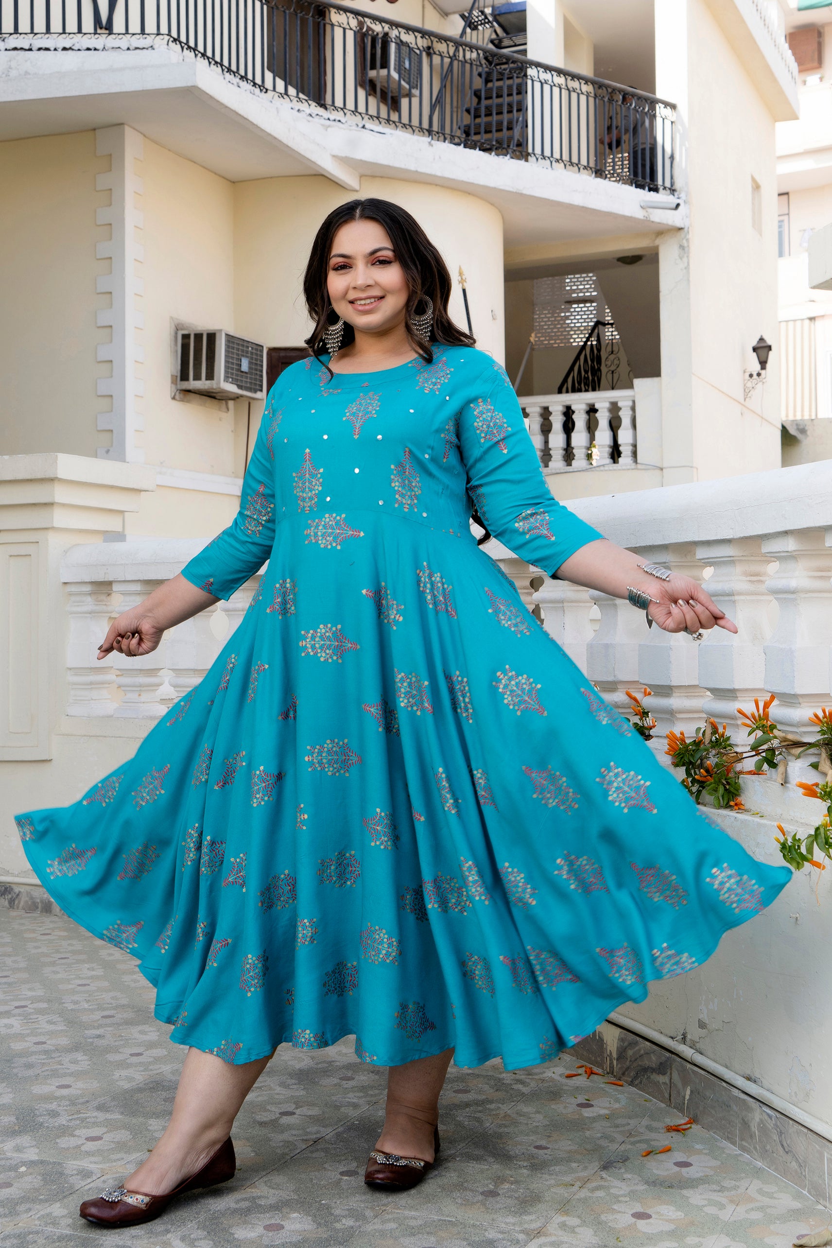 This rayon printed Anarkali kurti is designed to offer everyday comfort with a graceful silhouette. Made from soft and lightweight rayon fabric, it provides a smooth feel and ease of movement throughout the day. The calf-length Anarkali style adds a flowy and elegant look, while the round neckline and three quarter sleeves give it a classic finish. The non-transparent fabric ensures confident wear, making it suitable for daily wear, office use, and casual outings. Easy to style with leggings or churidar, this kurti is ideal for regular use.