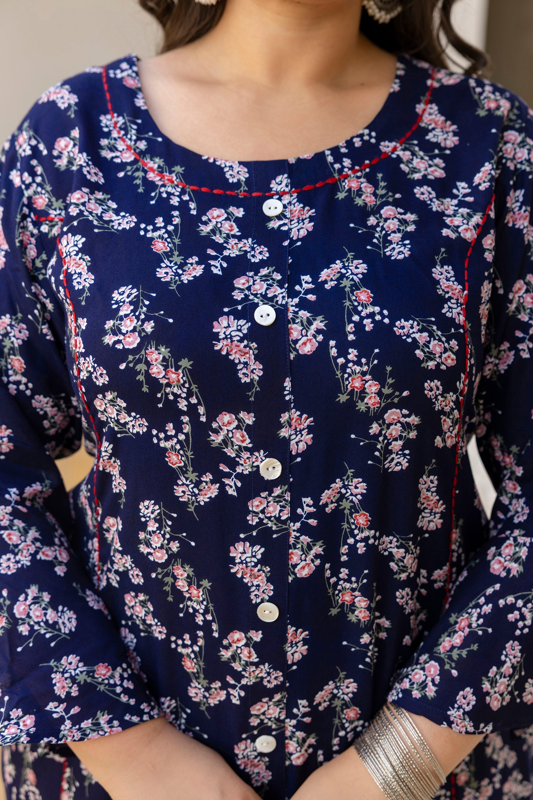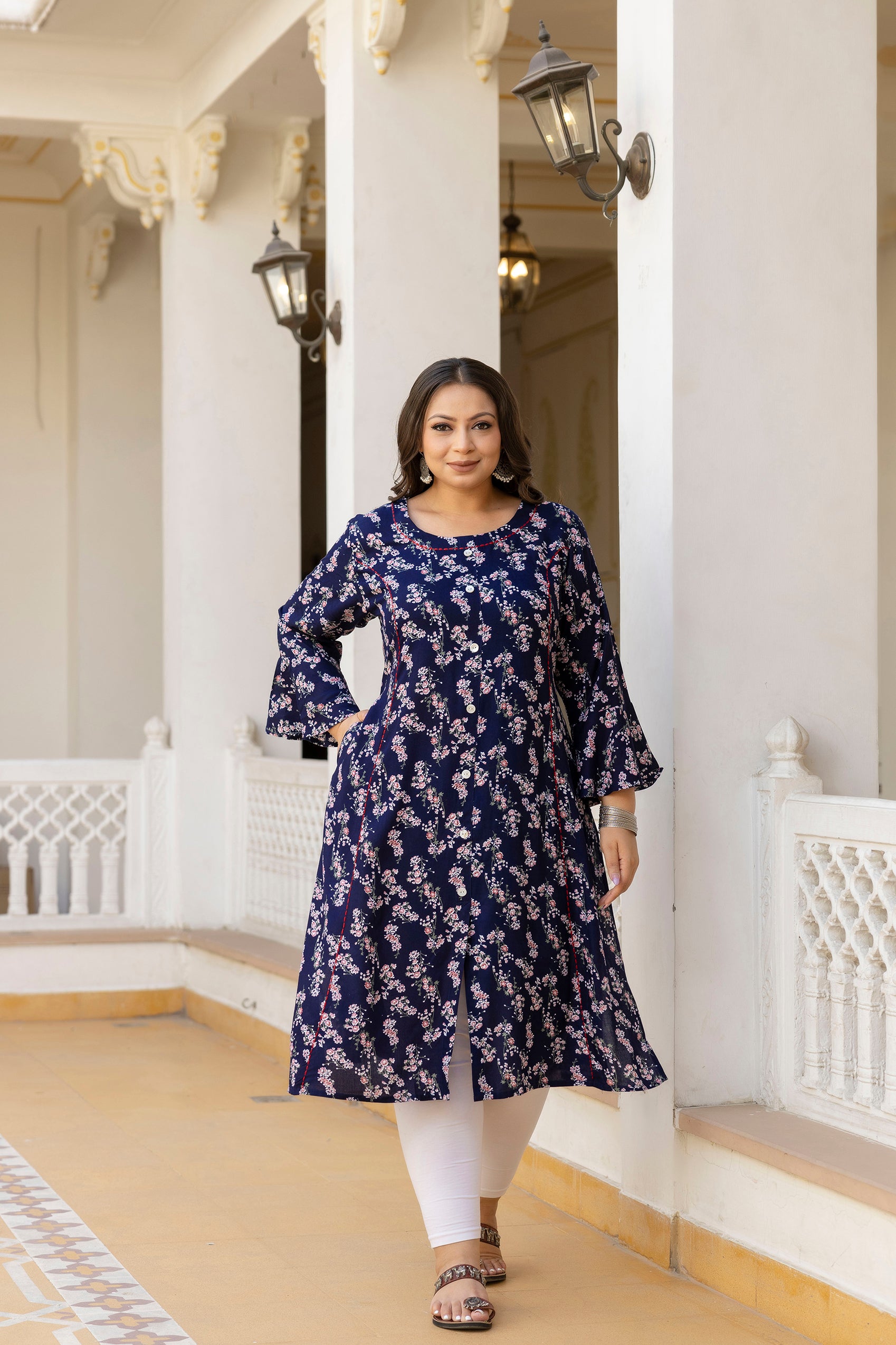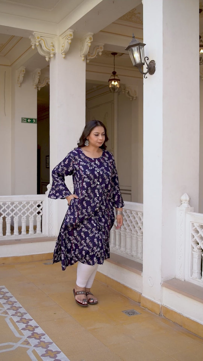 This rayon printed kurti is designed for everyday comfort and effortless styling. Made from soft and lightweight rayon fabric, it offers a smooth feel and comfortable wear throughout the day. The calf-length design gives a graceful and modest look, while the round neckline and three quarter sleeves add a classic touch. The non-transparent fabric ensures confident wear, making it suitable for daily wear, office use, and casual outings. Easy to style with leggings or palazzos, this kurti is ideal for regular wear.