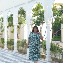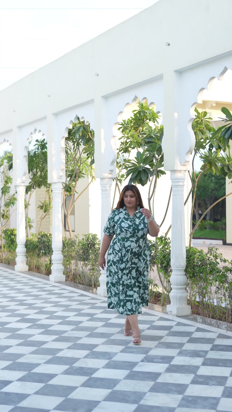 Add a touch of refined style to your everyday wardrobe with this Dark Green Cotton Printed Calf-Length Dress. Made from soft and breathable cotton fabric, it offers day-long comfort while maintaining a smart and fashionable look. The elegant printed design combined with a stylish collar neckline gives this dress a trendy yet modest appeal. Its short sleeves enhance comfort, making it a great choice for warm weather and casual outings.