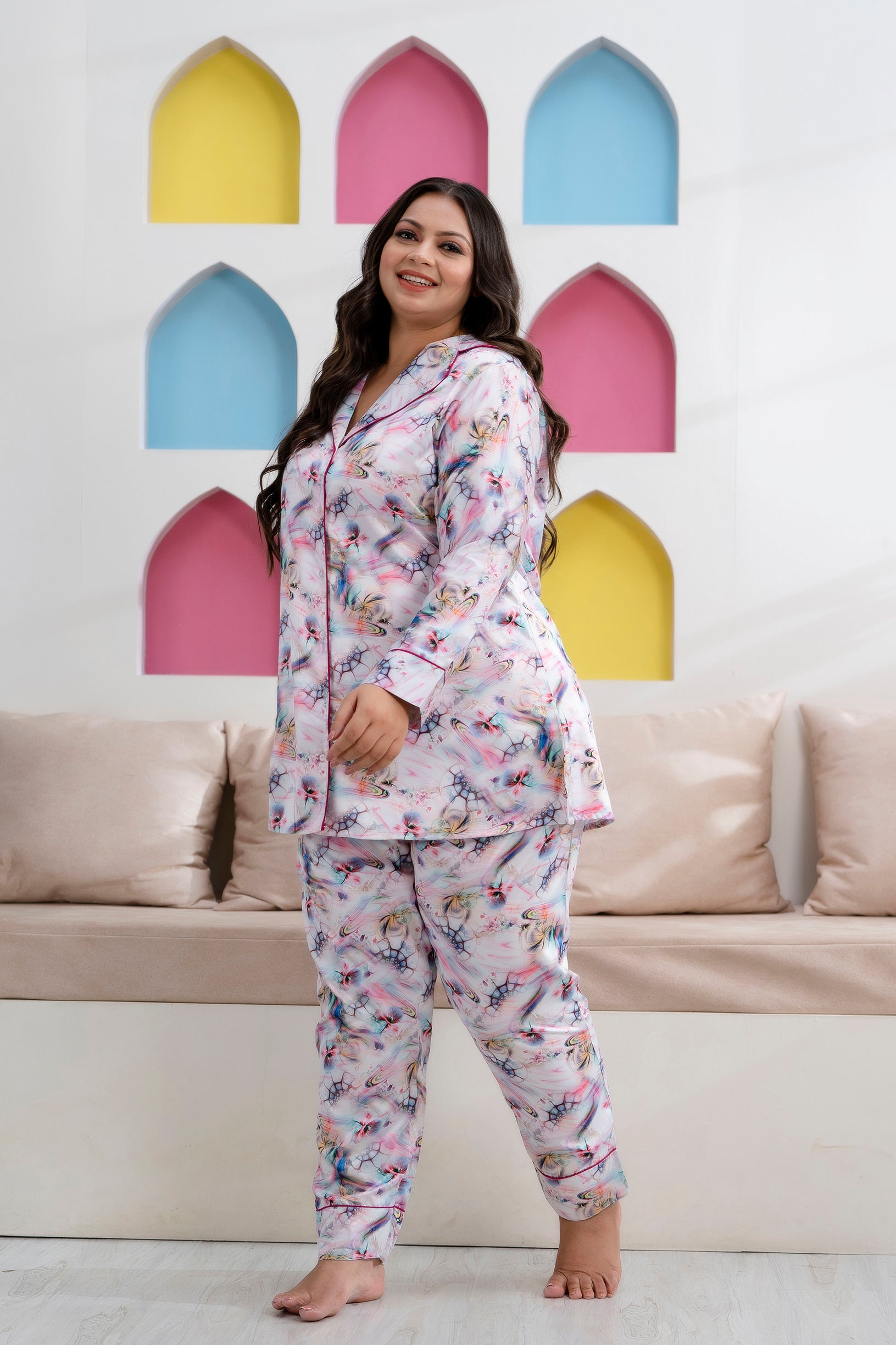 Experience luxurious comfort with this Light Purple Satin Printed Long Shirt & Pyjama Night Suit. Made from premium satin fabric, it feels smooth and gentle on the skin, giving you a restful and stylish night’s sleep. The beautiful printed design paired with a classic collar and full sleeves adds a touch of sophistication. With a coordinated pajama, this set offers both comfort and elegance — perfect for relaxing nights and cozy lounging at home.