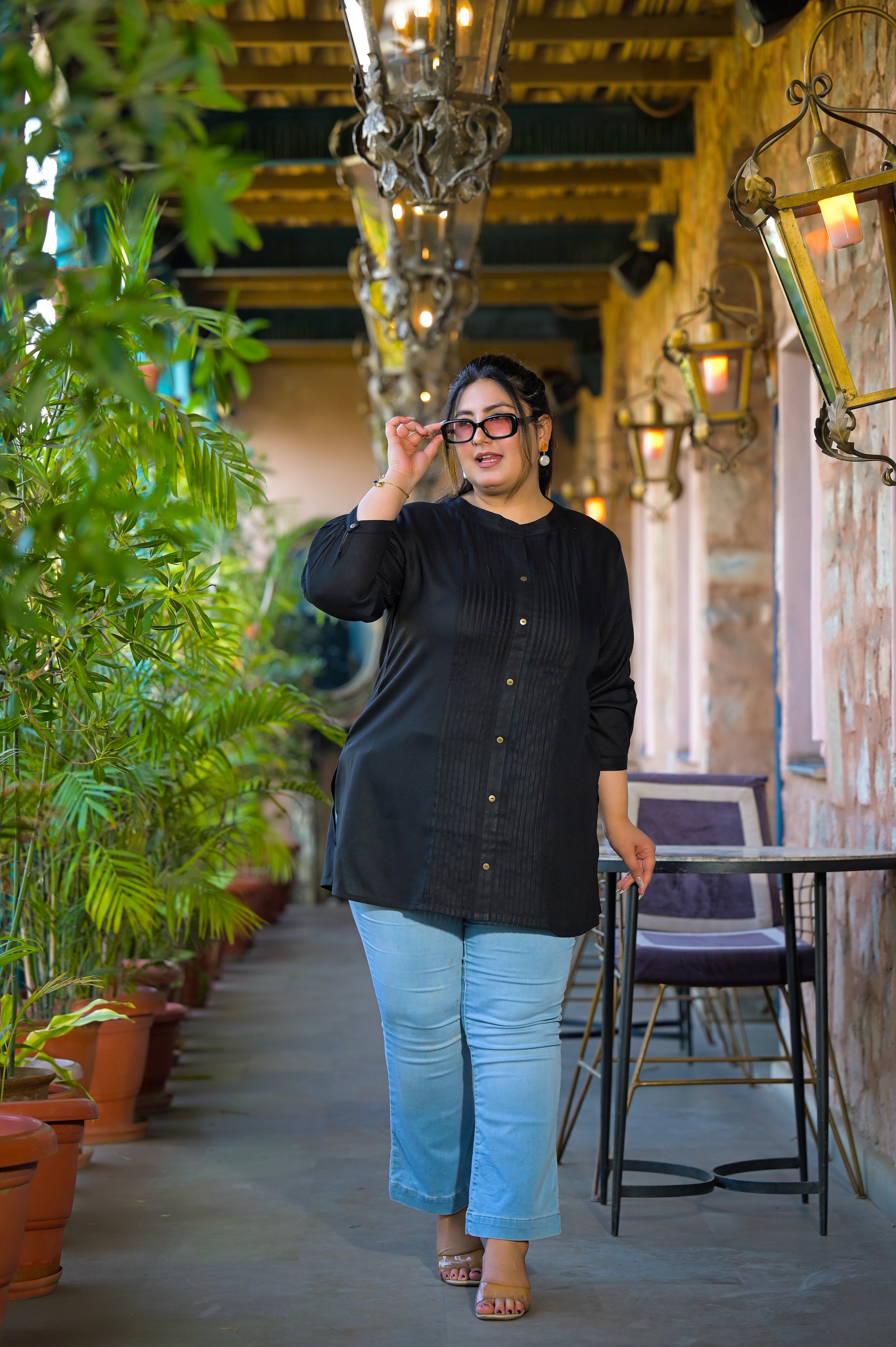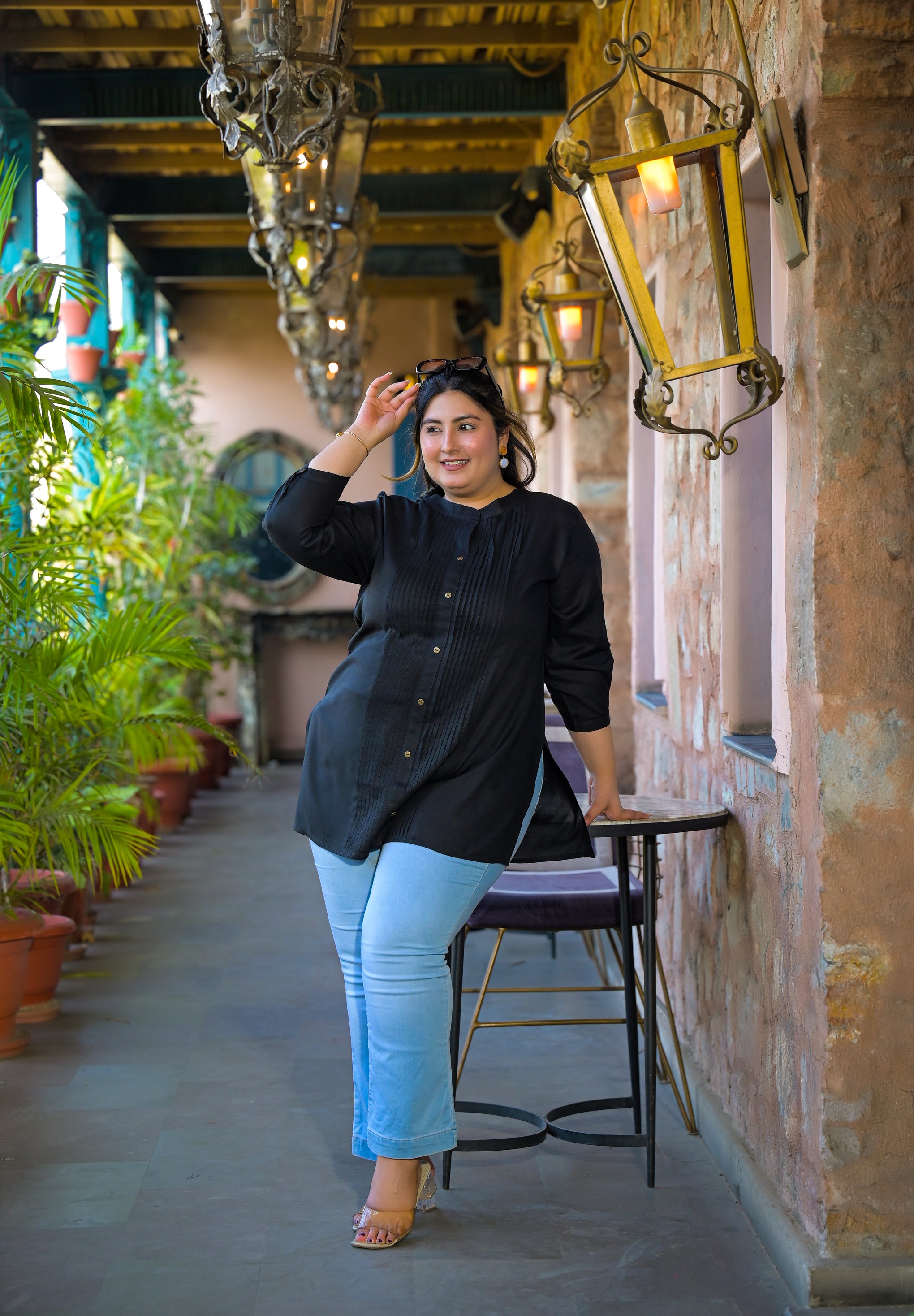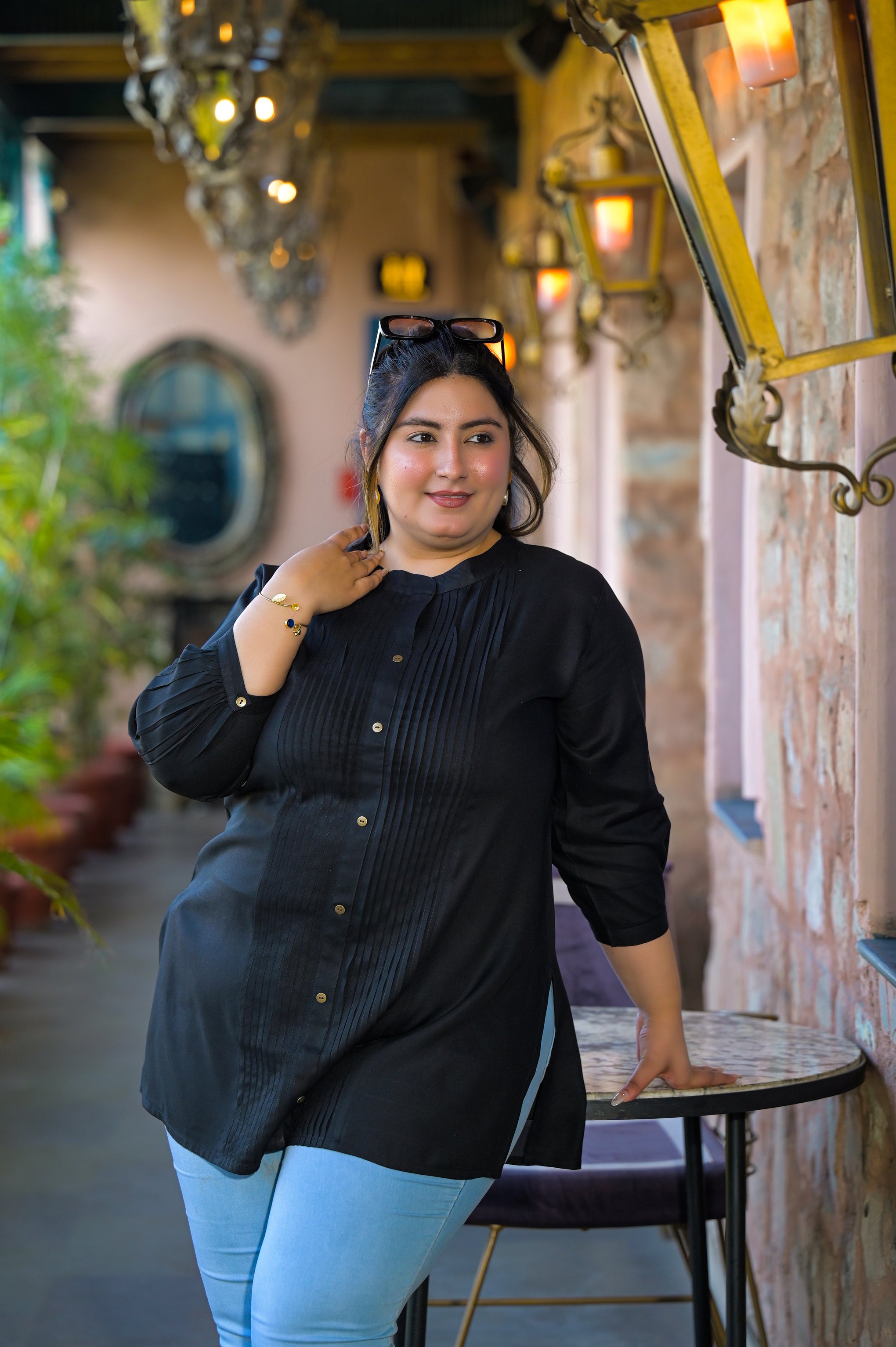 The solid pattern and short-length silhouette create a flattering and timeless style. Easy to pair with jeans, trousers, or palazzos, this black rayon top is ideal for daily wear, office wear, and casual outings.