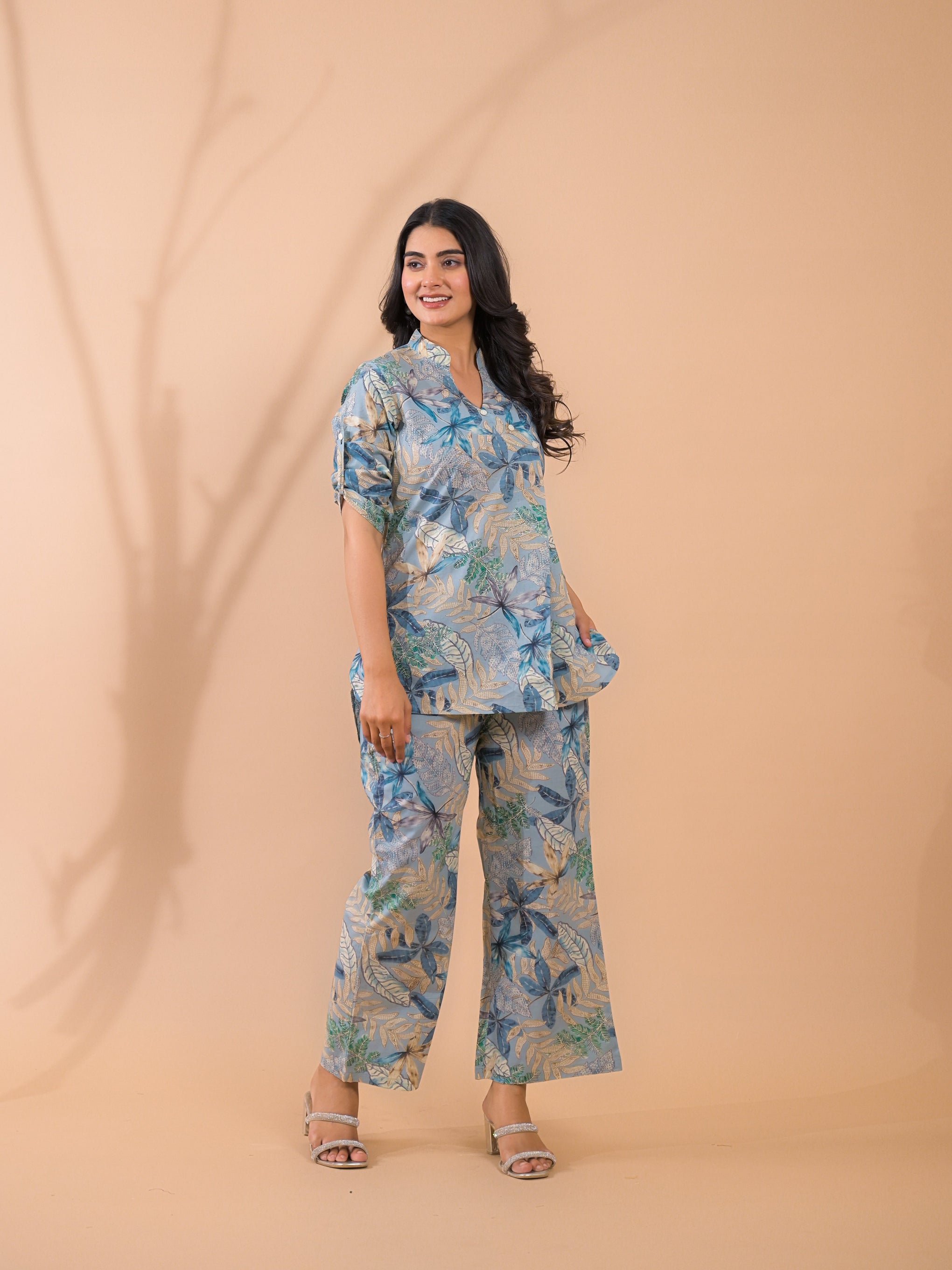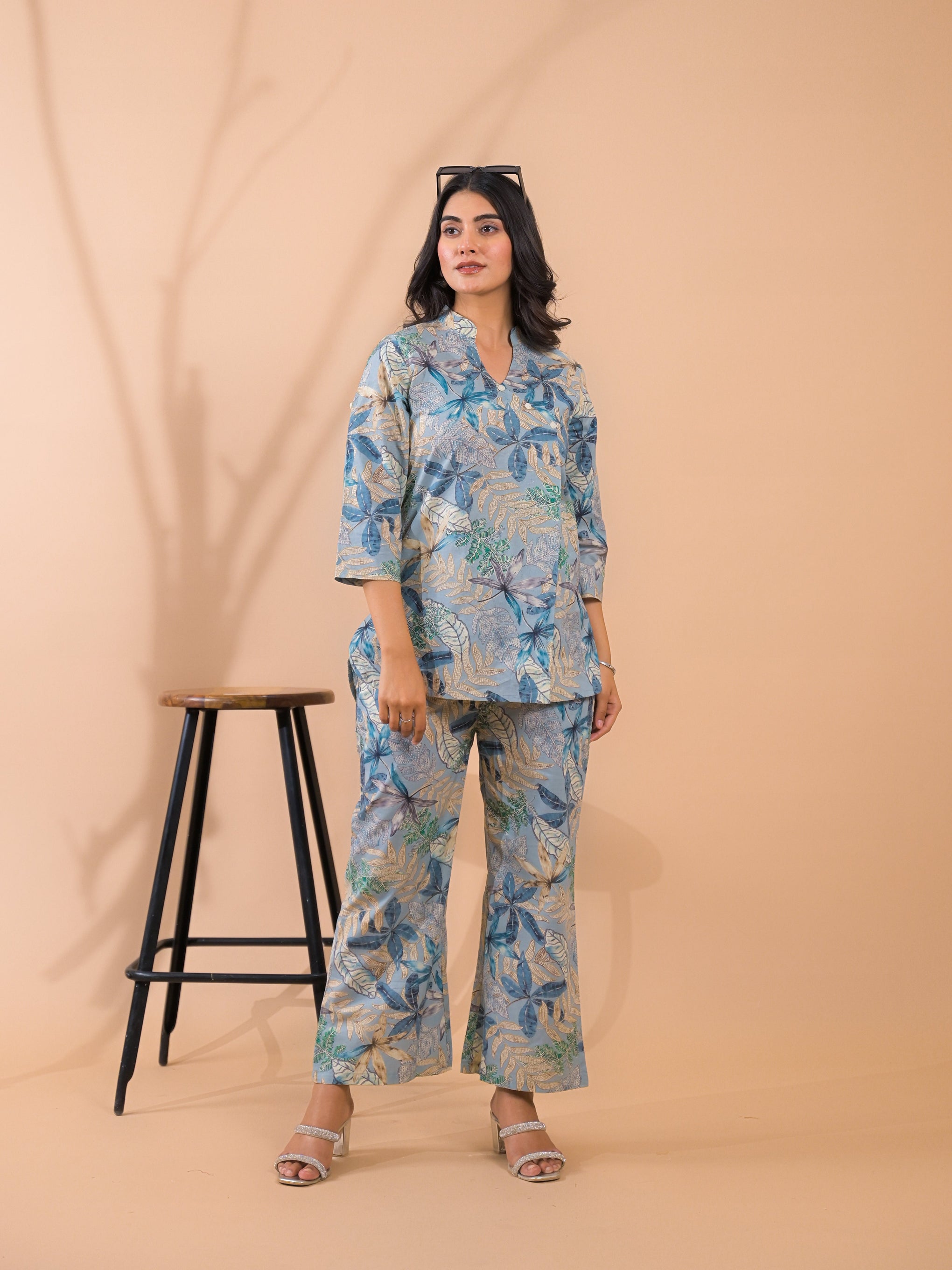 ✨ Breathable Comfort: Relaxed, and stylish all day long✨ Functional Elegance: Palazzo bottoms designed with two side pockets — where comfort meets practicality✨ Refined Details: front button-down front elevate the silhouette with a crisp, tailored feel✨ Effortless Sleeves: 3/4 sleeves strike the perfect balance between coverage and ease