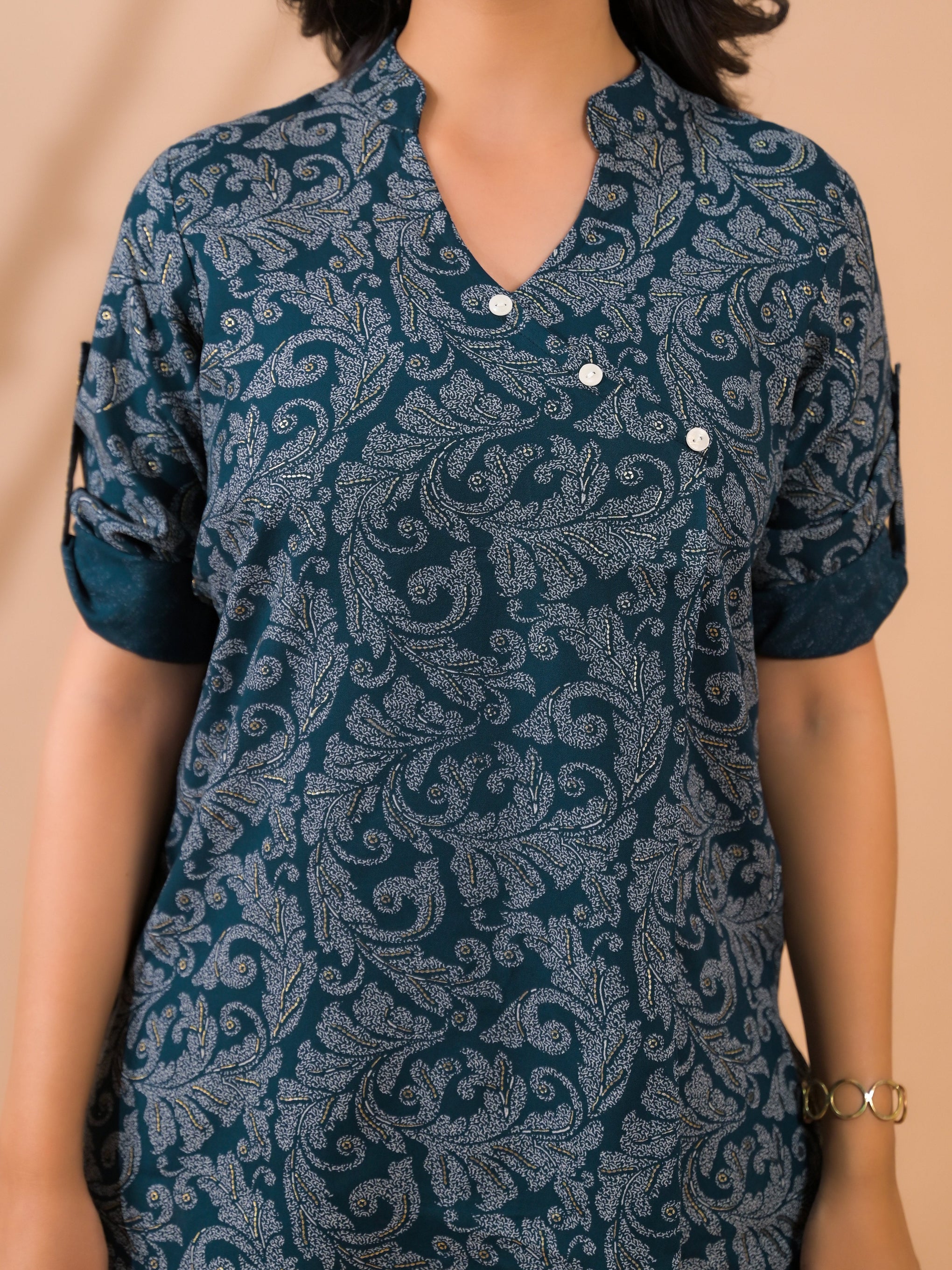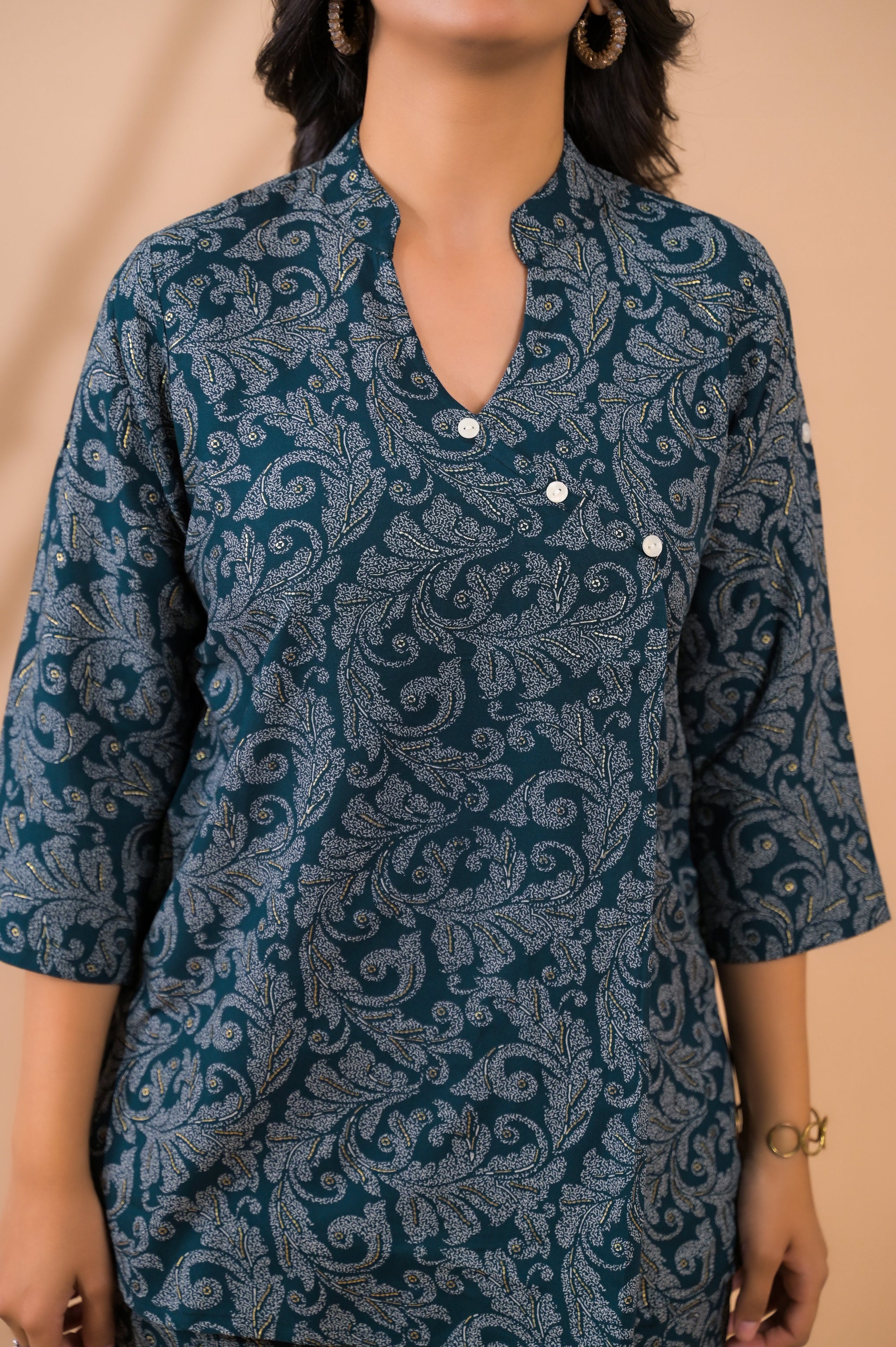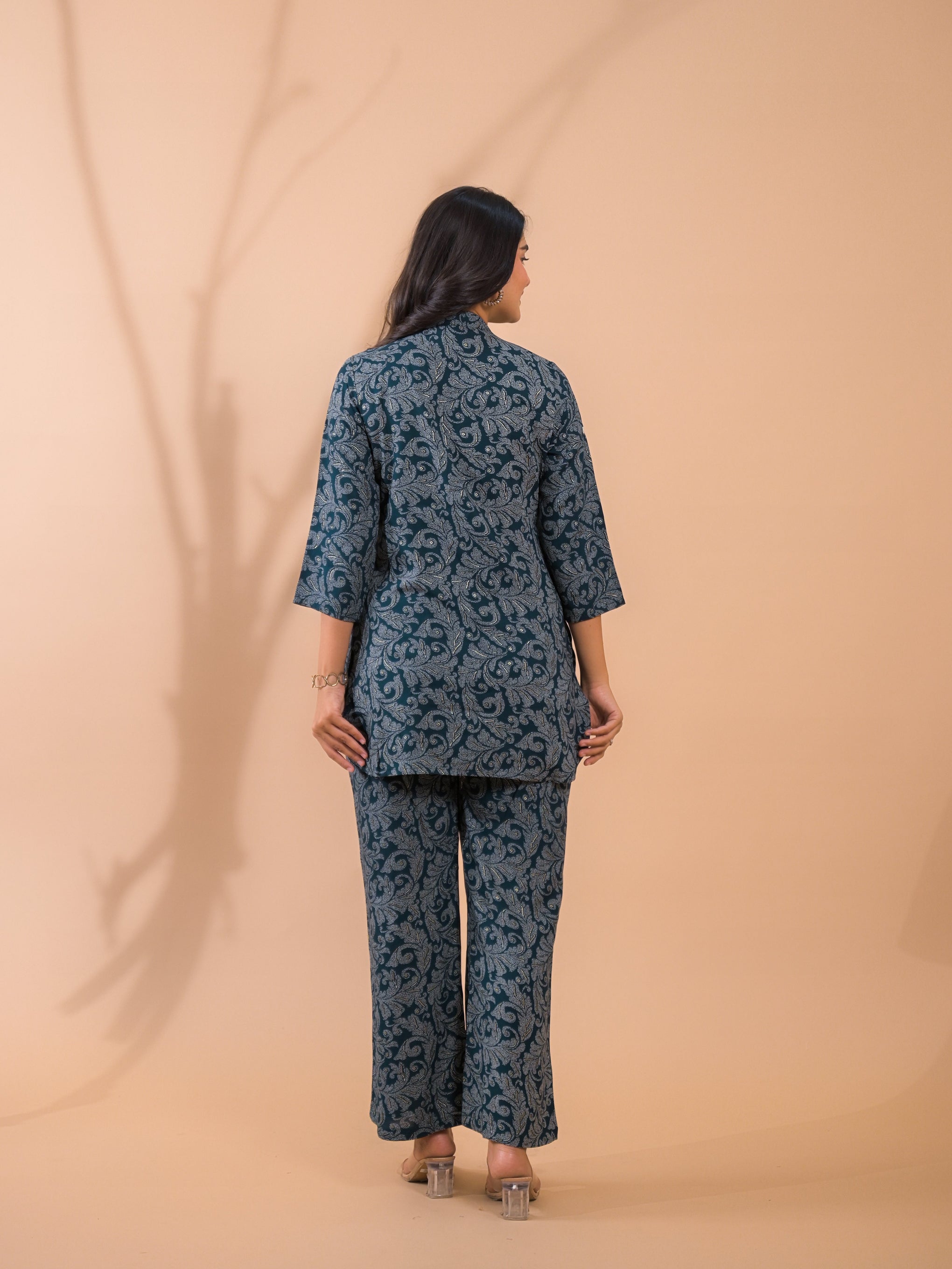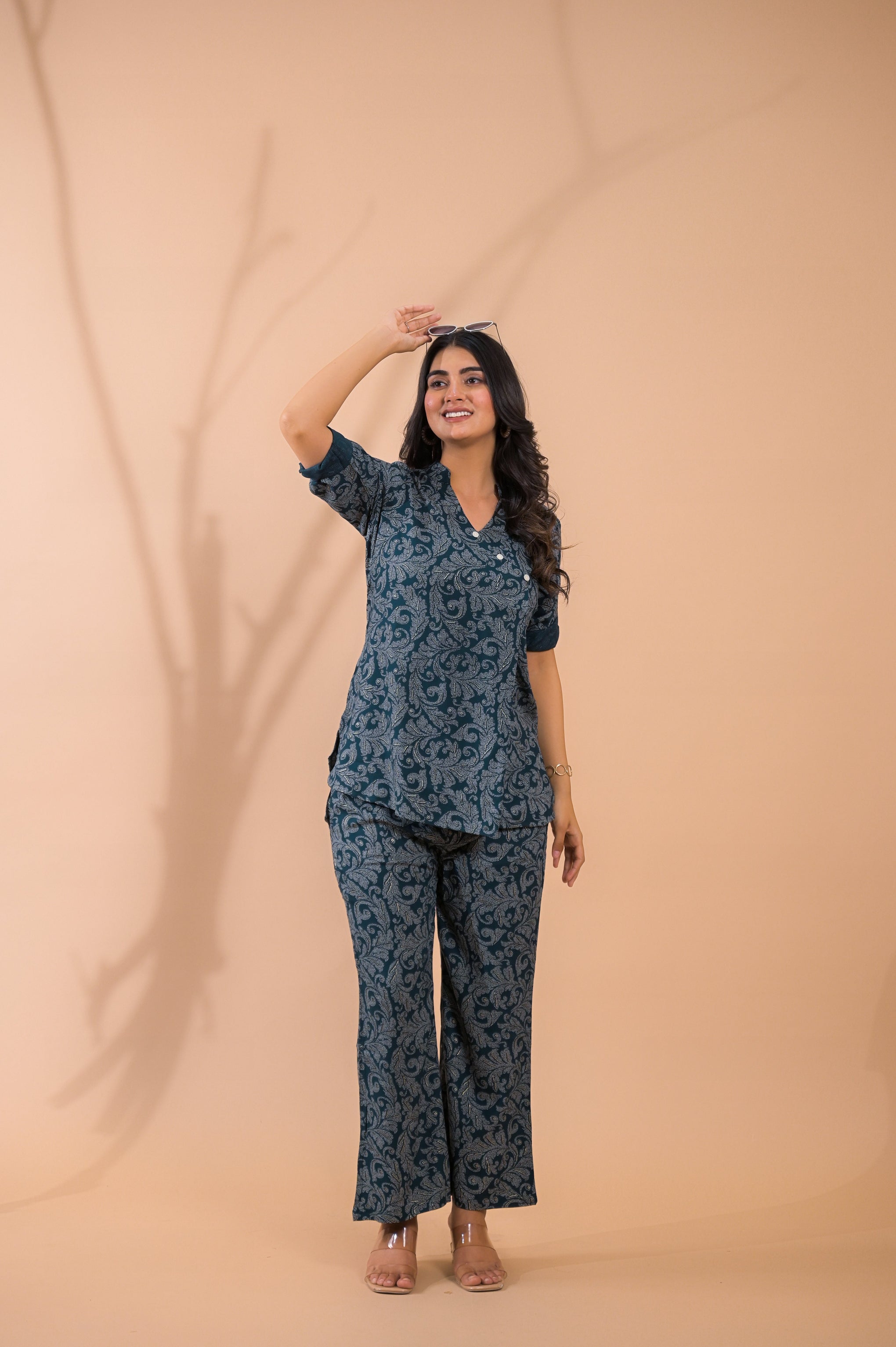 ✨ Breathable Comfort: Relaxed, and stylish all day long✨ Functional Elegance: Palazzo bottoms designed with two side pockets — where comfort meets practicality✨ Refined Details: front button-down front elevate the silhouette with a crisp, tailored feel✨ Effortless Sleeves: 3/4 sleeves strike the perfect balance between coverage and ease