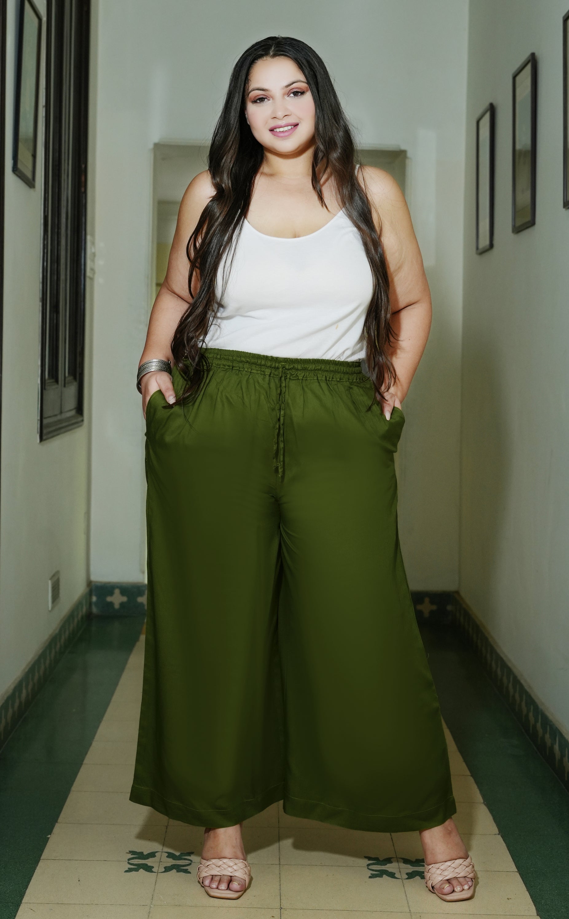 Enhance your everyday style with this Dark Green Rayon Solid Palazzo. Made from soft and breathable rayon fabric, it offers a comfortably flowy fit that keeps you relaxed all day long. The rich dark green shade brings a refined and classy touch to your look, making it versatile enough to pair with kurtas, tunics, or casual tops. Ideal for daily wear as well as light festive styling, this palazzo is a perfect blend of comfort and elegance.