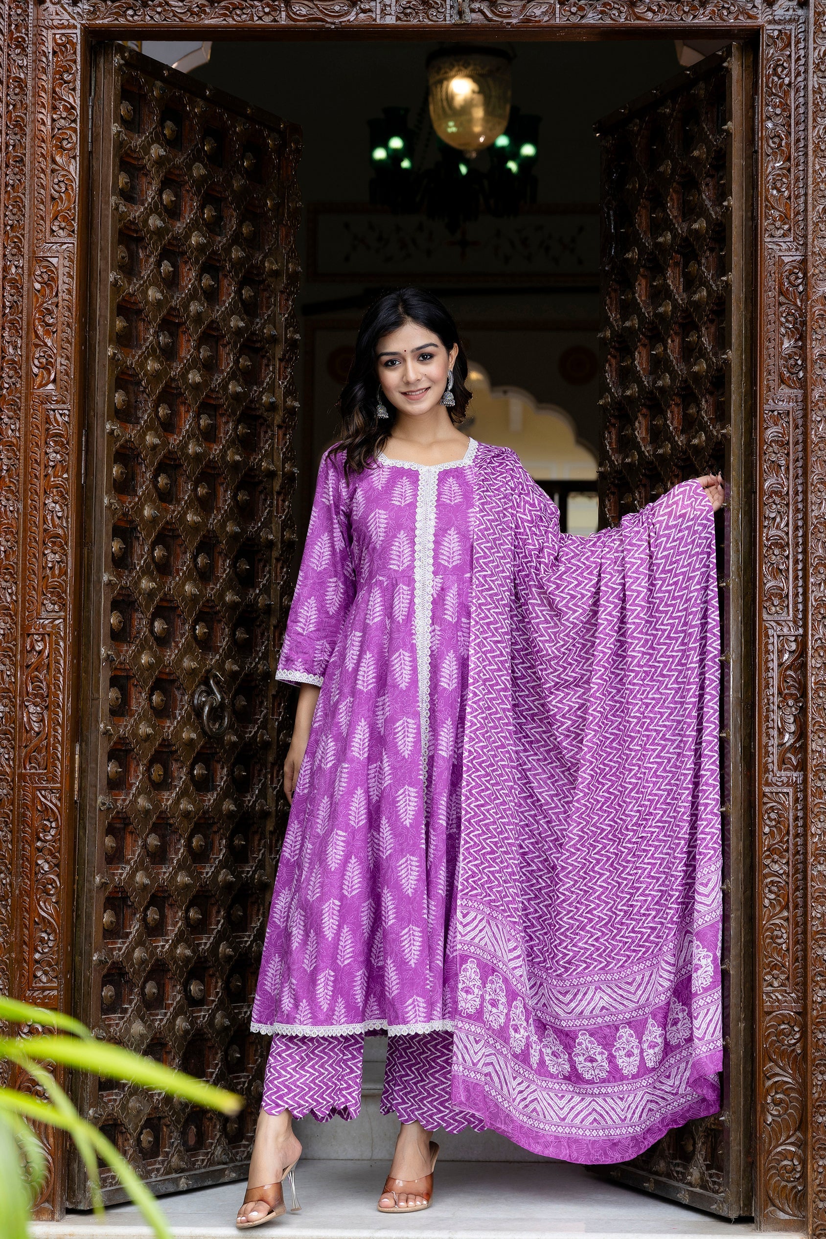 Embrace elegance and comfort with our Lavender Elegance Floral Printed Anarkali Kurta Pant Set with Dupatta. This exquisite dress features a stunning floral print on soft, breathable cotton fabric, ensuring you look and feel your best all day.