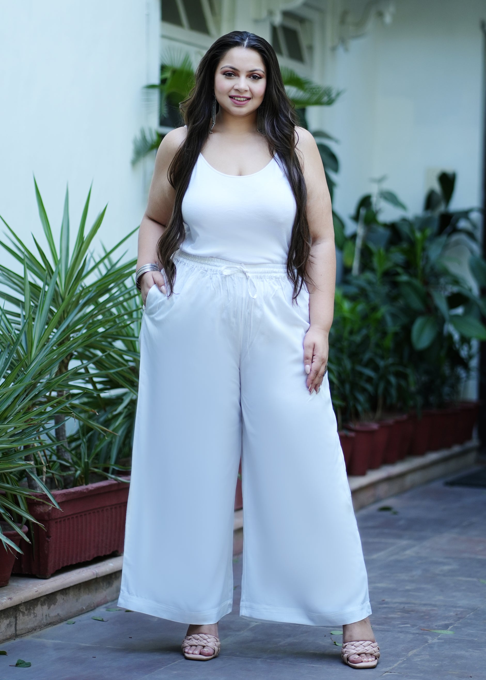 Complete your wardrobe basics with this White Rayon Solid Palazzo. Crafted from smooth and breathable rayon fabric, it ensures all-day comfort with a flowy and flattering fit. The solid white color adds a fresh, elegant look and pairs effortlessly with vibrant kurtas, tunics, and trendy tops. Perfect for daily styling, casual outings, or festive pairings, this palazzo offers unbeatable versatility and comfort.